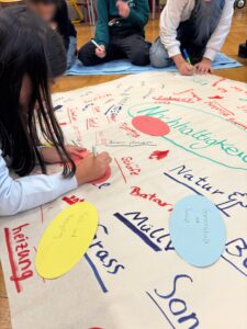 Im Rahmen des Startchancenprogramms und des Familiengrundschulzentrums haben die Kinder kreative Bildtafeln gestaltet, die sich mit Natur, Umwelt und Recyling auseinandersetzen. Gleichzeitig ist das Projekt Teil des Wunsches der Kinder (aus dem Kinderparlament), den Eingangsbereich der Schule schrittweise zu modernisieren und freundlicher zu gestalten. Die bunten Motive verschönern nicht nur die Wände, sondern erzählen Geschichten über Nachhaltigkeit.